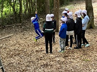 3時間のTAPです。さまざまなアクティビティをグループで話し合い協力しながらチャレンジしています。友達への優しさサポートや励ましの声やチャレンジ達成の全員の歓声が徳地の森にこだましていました。