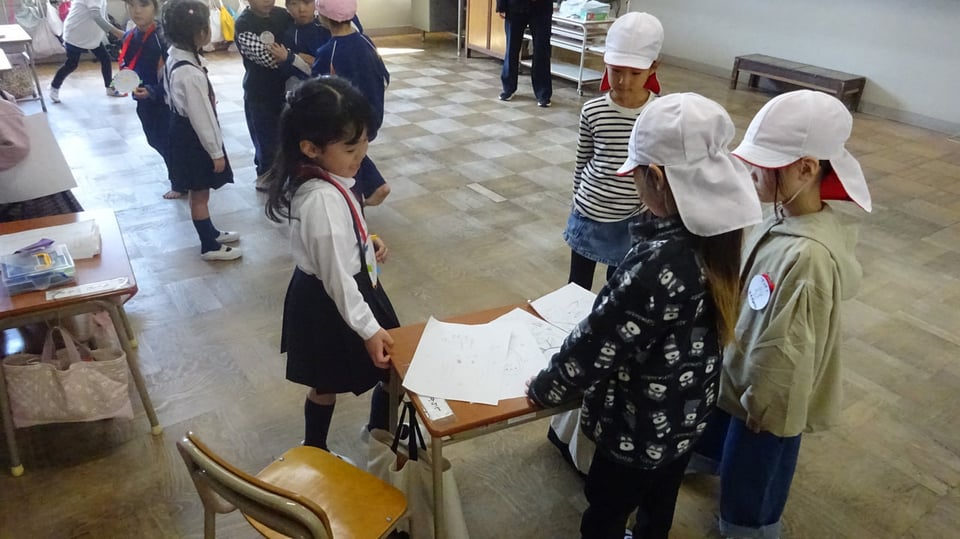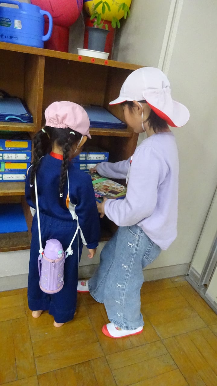 11月6日(木)体育館で、1年生と命信寺保育園と小百合幼稚園が交流をしました。1年生が初めて年下に接する機会。とてもやさしくしっかりした先輩でした。
