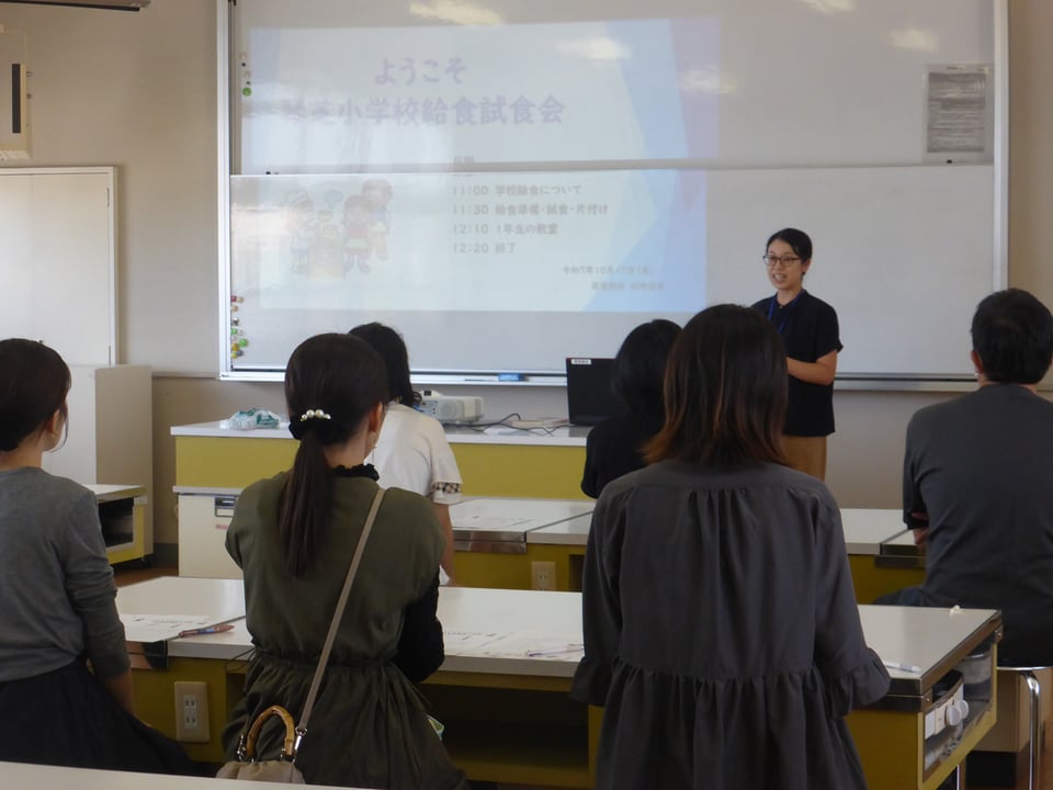 10月17日(金)3,4校時に給食試食会を行いました。子どもたちがいつも食べている給食を食べる機会とともに、栄養についての講義もありました。多くのご参加ありがとうございます。