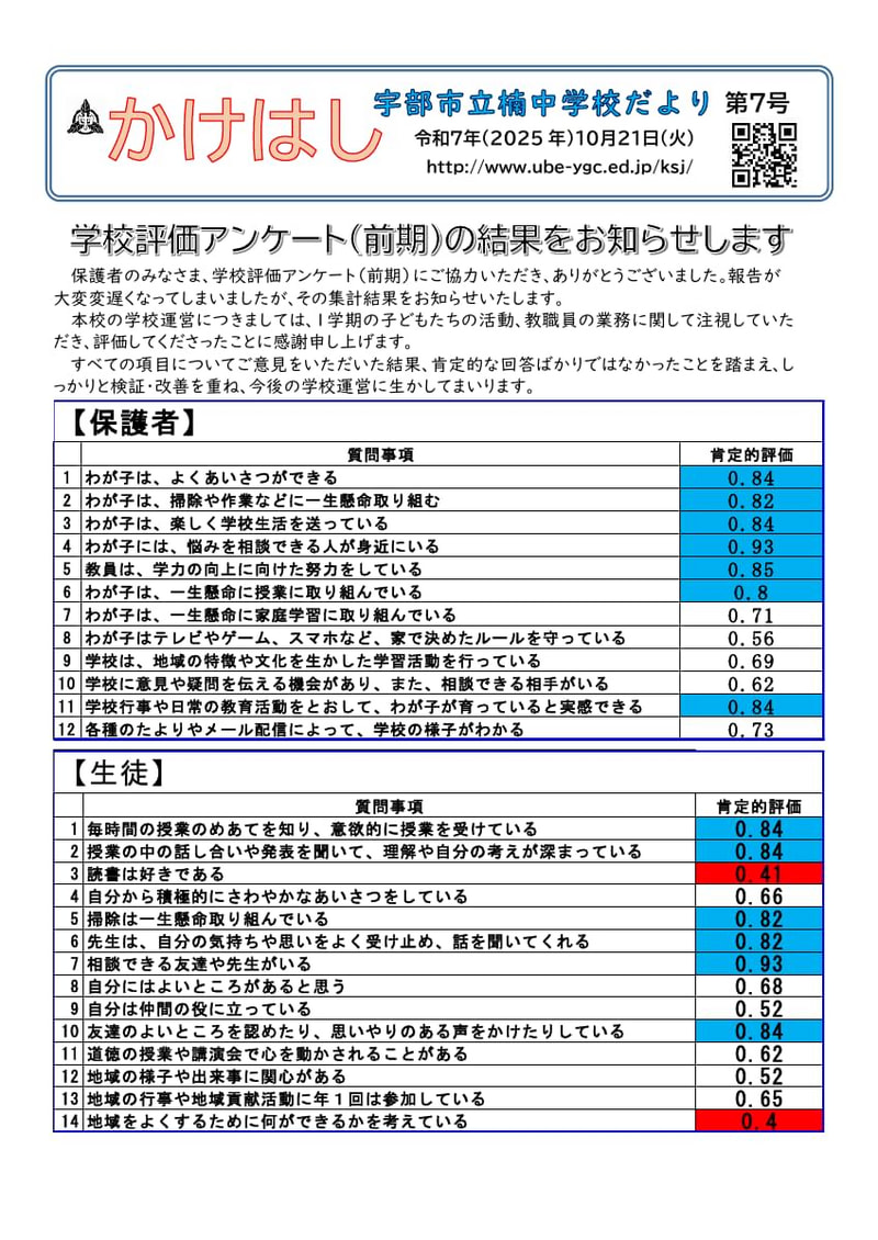 今日は学校だより「かけはし」第7号(071021)を掲載させていただきます。