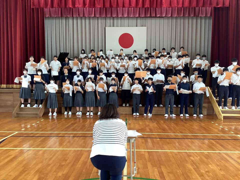 今日の昨日の1校時はの全校音楽の様子をお伝えします。