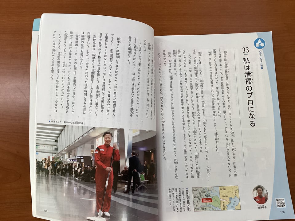 合同であいさつを行い、授業開始です。今日の教材は「私は清掃のプロになる」でした。厚東川中の先生の範読の後、考えを深めていきました。