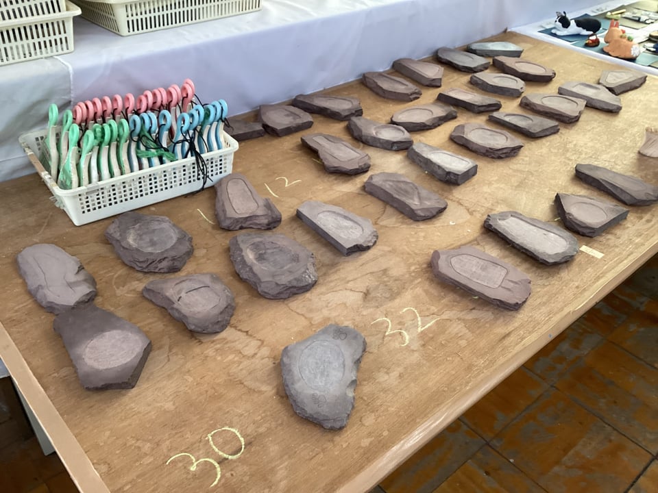 保護者・地域の皆様にお知らせがあります。現3年生が2年生当時に制作し、完成した赤間硯を「学びの森くすのき」に展示いたします。