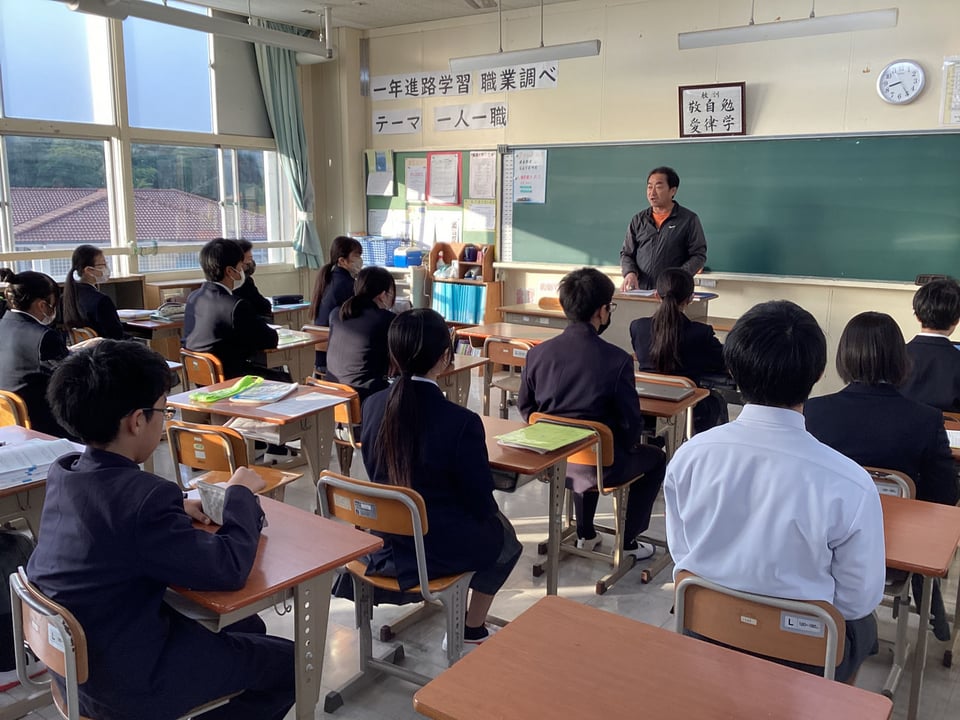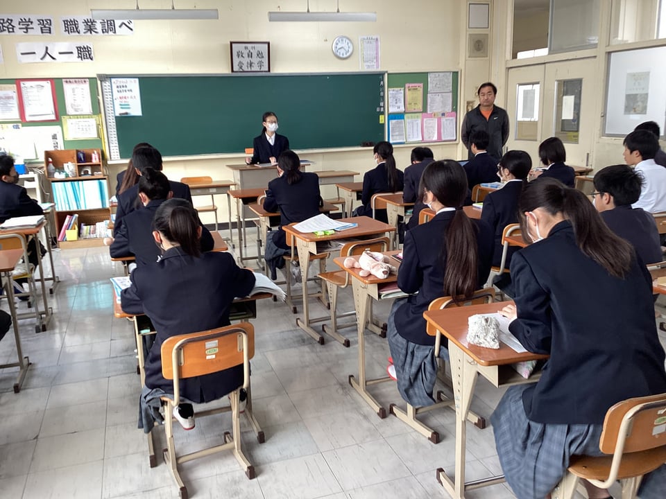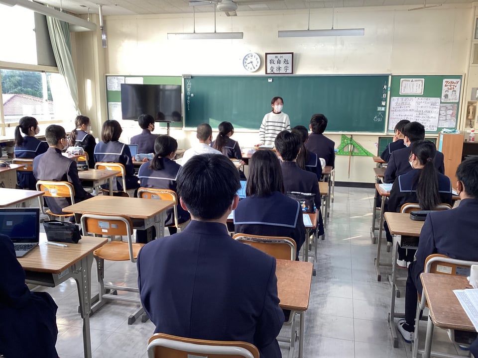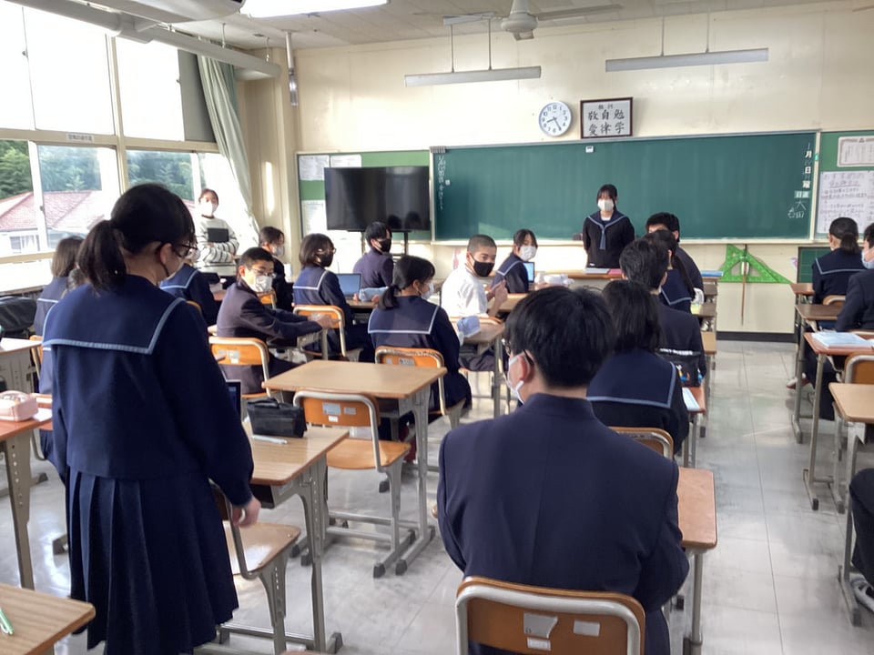 楠中学校は来年度のチーム担任制導入の準備期間として、昨日から試行を行っています。今日はチーム担任制2日目となります。1・2年生の教室をぶらっと訪問しました。