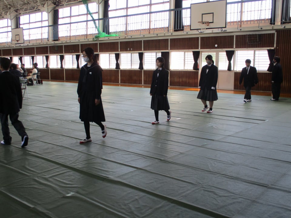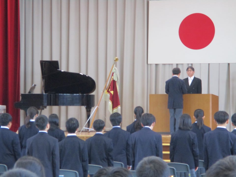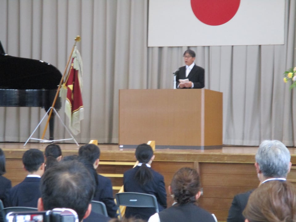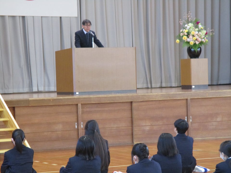 校長からは式辞の中で「すてきな大人」へ成長するために必要な4つの力についてありました。楠中生、「自ら学ぶ力」「豊かな人間性」「最後までやり抜くたくましさ」「ふるさとを愛する心」この4つを大切にしていき、学習や感動体験を積み重ねて「すてきな大人」へ成長していきましょう。やればできる!君たちならできる!