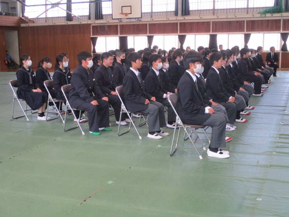 午前中は着任式・始業式が行われました。新2年生27名、新3年生34名、全員出席とはなりませんでしたが、幸先の良いスタートが切れました。