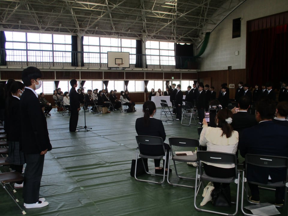 令和8年度第24回錦中学校入学式が行われ、新入生26名が入学しました。式中の呼名での返事は全員が一生懸命で大変すてきでした。新入生代表の宣誓も元気よく、やる気が伝わってくるものでした。堂々としたすてきな宣誓でした。
