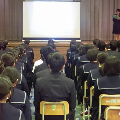 ◆11月29日の午後、体育館で学校保健安全委員会を開きました。 まず、生徒会保健委員長が、前回実施の「メディアコントロー…
