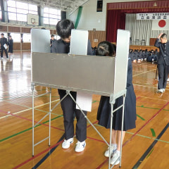 ◆12月2日午後、立会演説会に続いて生徒会正副会長を 決める選挙を行いました。 投票箱は宇部市役所から ジュラルミン製の…