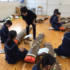 ◆本日、1年生の音楽の授業で、琴教室を行いました。 講師の先生をお迎えして、琴演奏の基礎技術を教わりました。 一人一台ず…