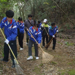 ◆土曜日の午前中に、船木地区千林尼石畳清掃活動に有志生徒30名と 教員3名が参加しました。これは『楠中生徒会WeLove…