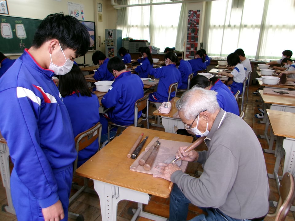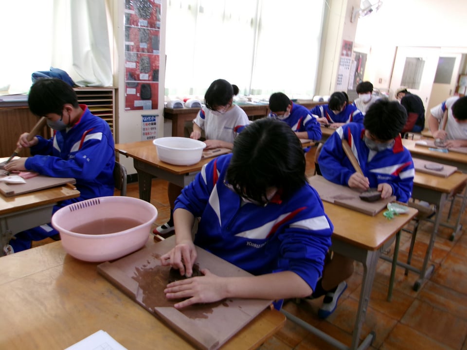 無心になって、赤間硯の制作に取り組む2年生の姿はすてきです。一心不乱に削ったり、磨いたりすることで唯一無二の自分だけの赤間硯が完成します。日枝先生による指導も3月のあと1回となりました。すてきな自分だけの赤間硯を完成させましょう。