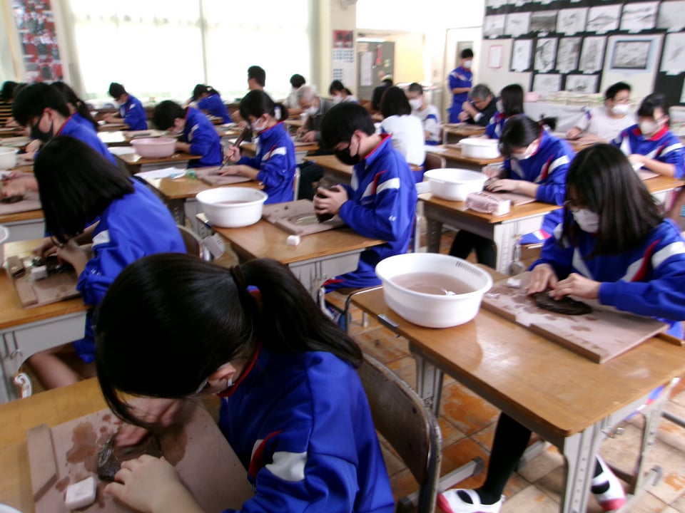 今日は、日枝先生がお見えになり、2年生の赤間硯制作の指導をしていただきました。こちらも大詰めを迎えています。