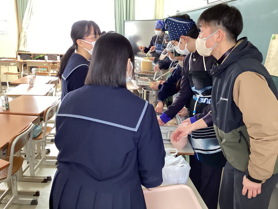 準備から配膳まで終始「笑顔」がありました。最後の給食を3年生全員で楽しみながら過ごしているように見えました。本当にすてきなクラスです。中学校生活の中の「最後」が一つずつ終わってきます。卒業というゴールが近づいていますが、今日の給食時間のような「温かな雰囲気」で卒業証書授与式を迎えてほしいと思います。