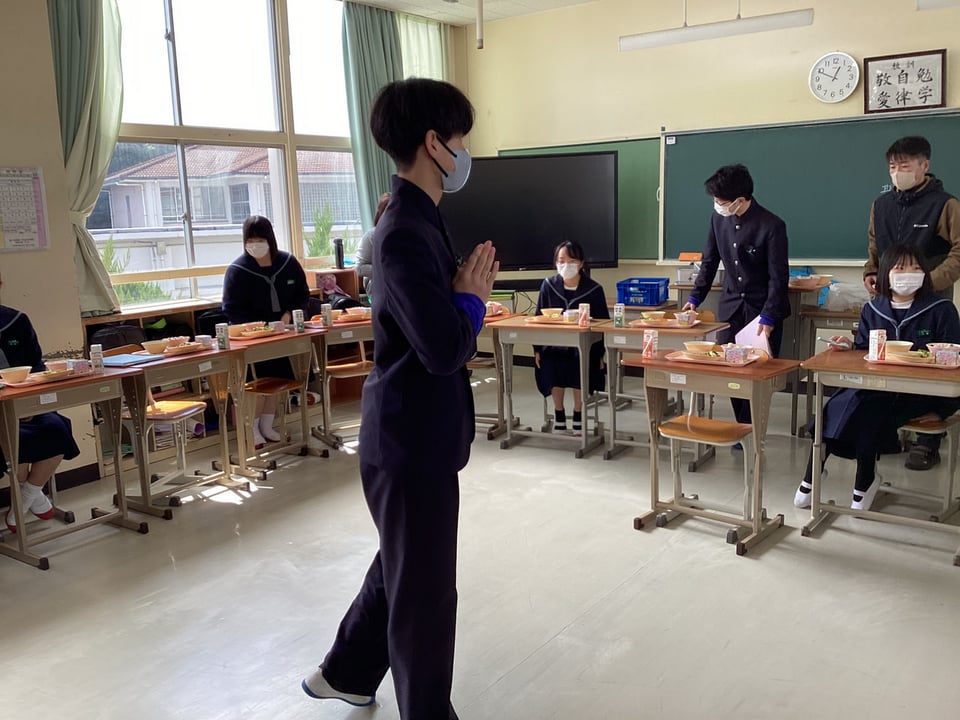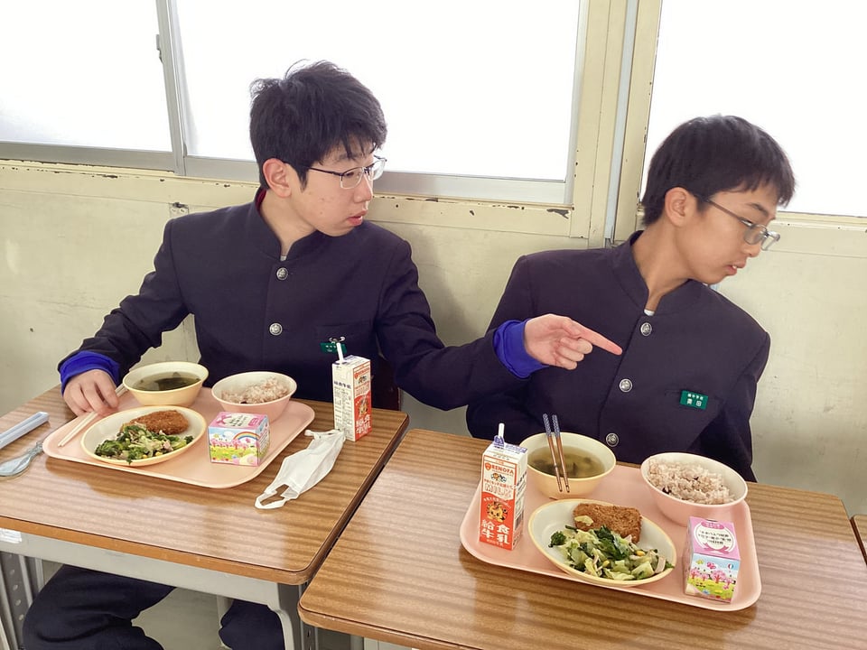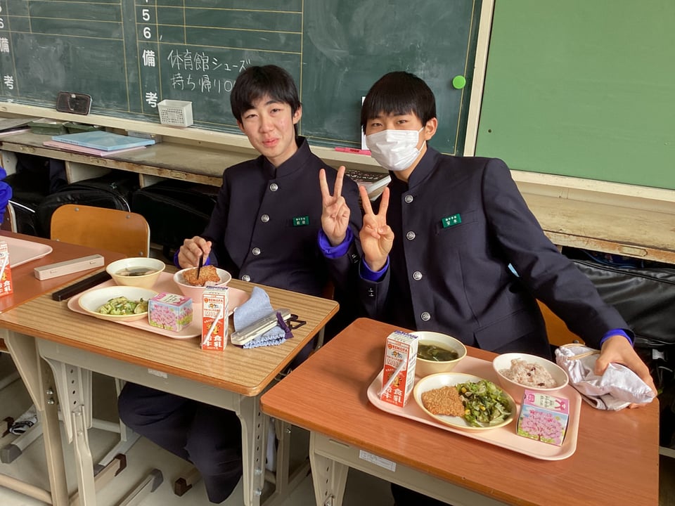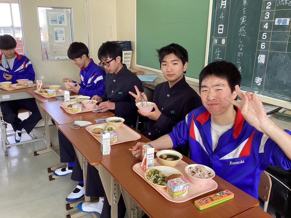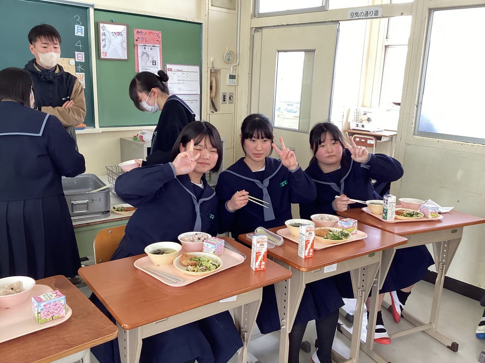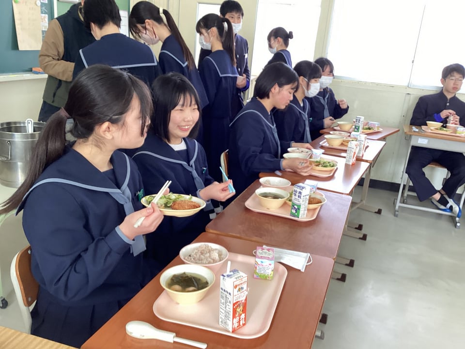 3年生にとって給食を食べるのは、人生で最後になる人が多いかもしれません。3年生は義務教育最後の給食でした。コロナ禍では「黙食」をしてきましたが、今日は全員で円陣を組んで楽しく会話しながらの給食でした。