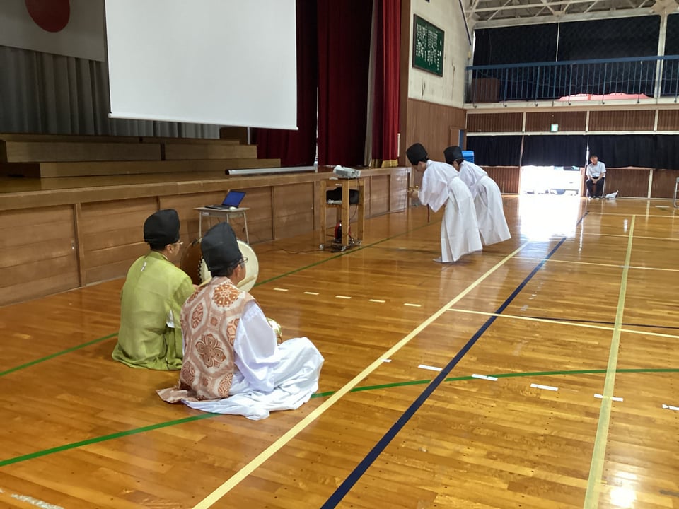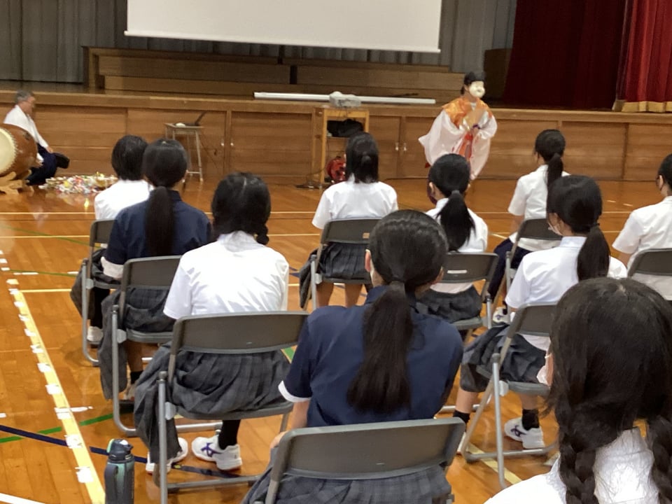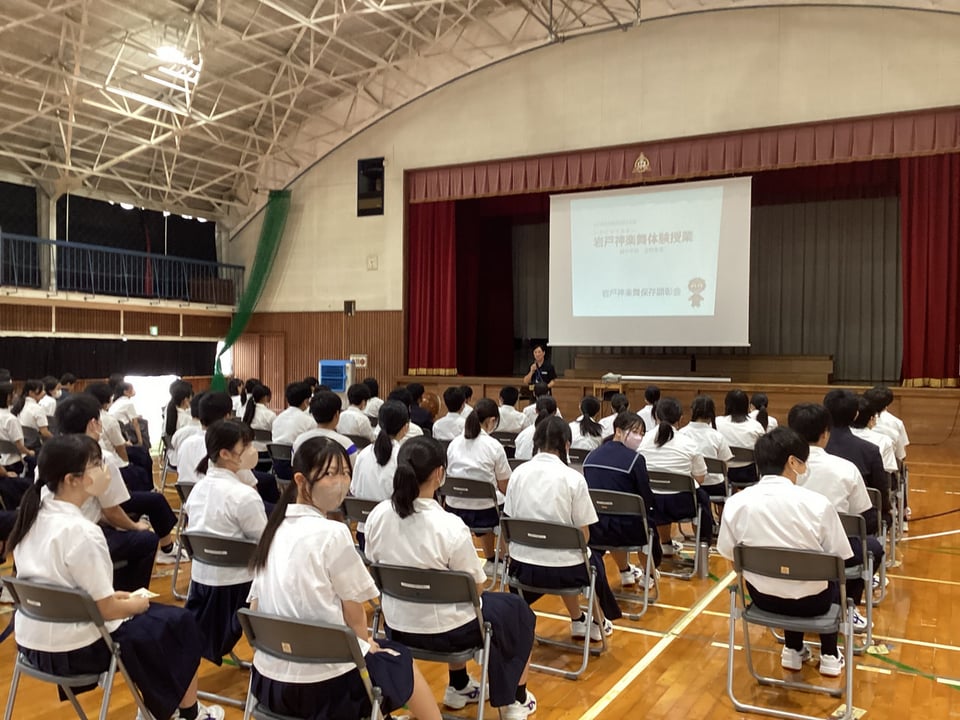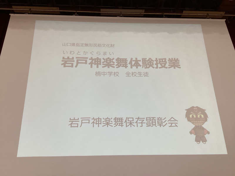 岩戸神楽舞保存顕微彰会さんは後継者不足に苦慮されています。5年前の卒業生である君たちの先輩も舞を披露されていました。興味が少しでもある楠中生は、是非、申し出てください。伝統文化の継承、君たちを後継者(担い手)として期待されています。挑戦してみませんか!!