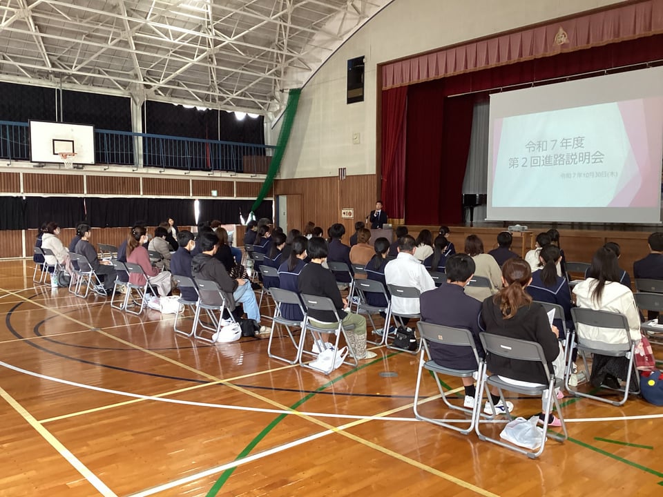 さて、今日の午後からは、3年生及び保護者を対象にした進路説明会を行いました。