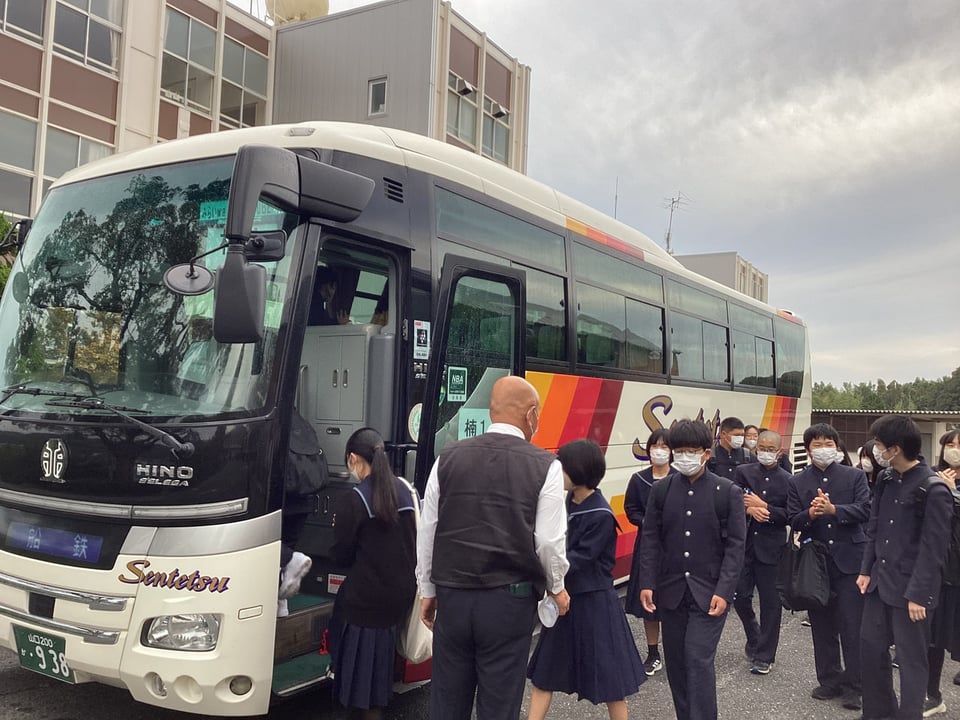 昨日の事前学習に真剣に取り組んでいた2年生、朝からハイテンション、張り切っていました。担任の先生によると、朝の学活に行くと、自発的に朝の会を行っており、バスの席順をみんなで協力して決めていたということです。2年生の団結力はすばらしい。これから、3年生は受験に向けて集中していきます。生徒会活動の中心は2年生へ移行していきます。今のみんなでがんばる、一人ひとりを大切にする雰囲気を生かしていきながら、張り切っていきましょう!やればできる!君たちならできる!