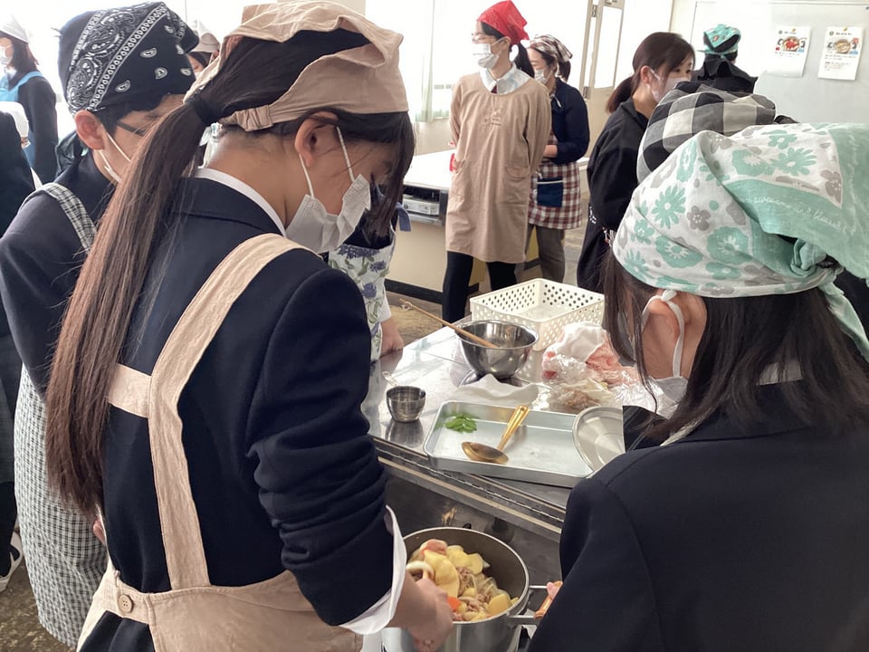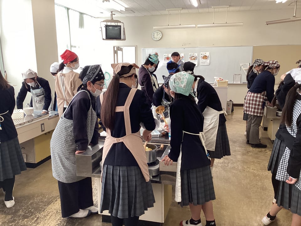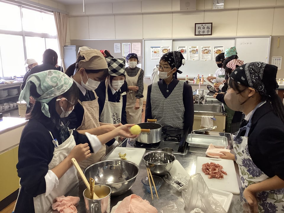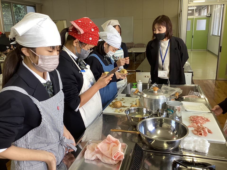 1年生にとって、調理実習は初めての経験です。包丁を日頃からよく使っている人から全く使ったことのない人までいます。そんな状況の中、教員一人で授業を進めるよりもお手伝いしていただいた方が安全面でも心強いですし、子どもたちが困った時に助けてもらえます。本当に助かりました。ありがとうございました。