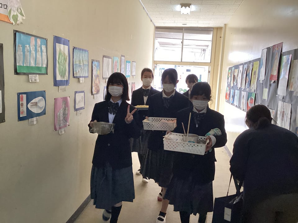 5校時に下準備ができている具材等をもって、船木小へ大移動です。