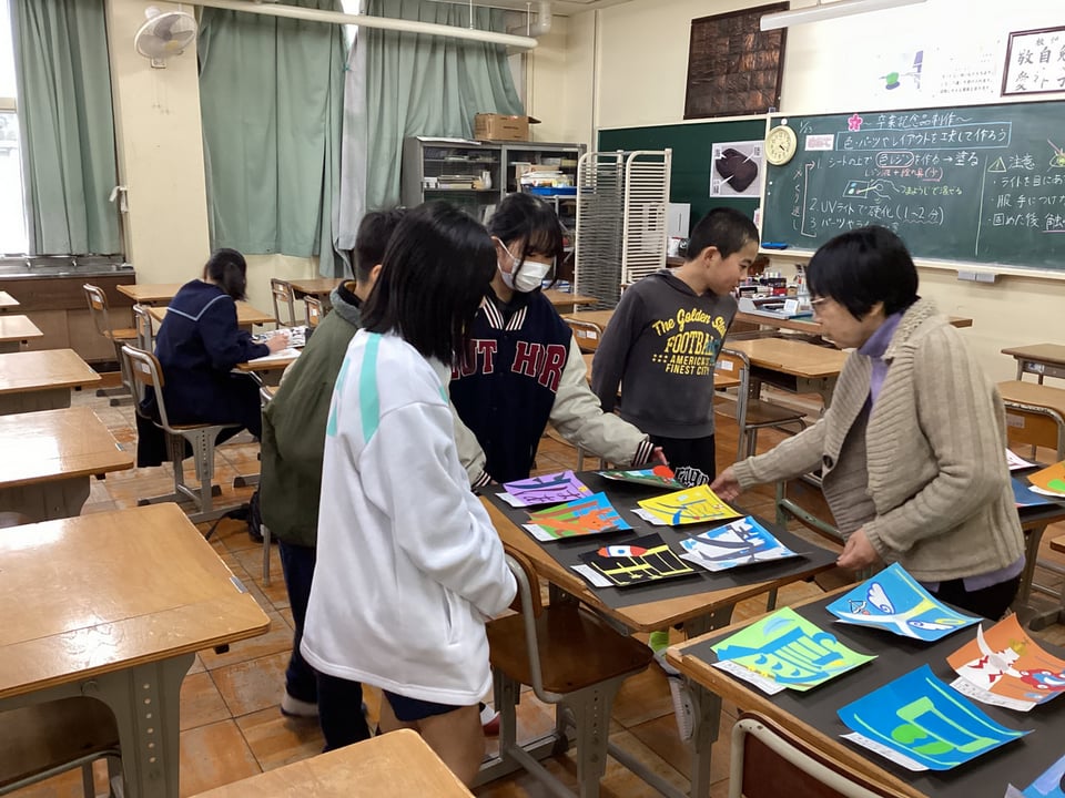美術室にぶらっと訪問すると、ちょうど見学中でした。質問したり、様子を見たりしている姿が初々しかったです。