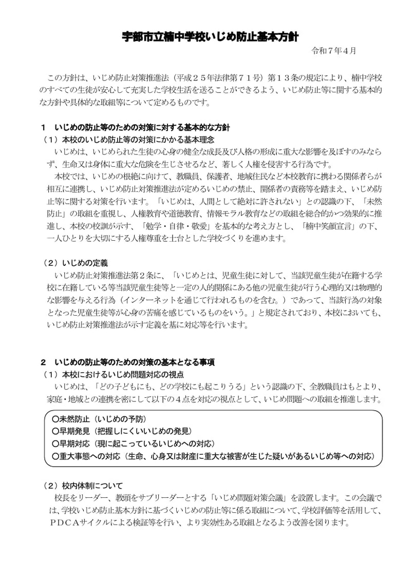 令和7年度楠中学校いじめ防止基本方針(300KB)