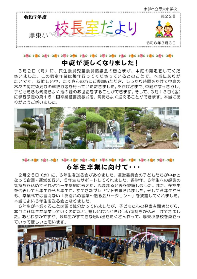 > 令和7年度 校長室だより 第22号