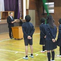 12月22日に2学期の終業式が行われました。翌日からの冬休みにうれしそうな表情の子どもたち。校長先生と生徒指導担当の話を…