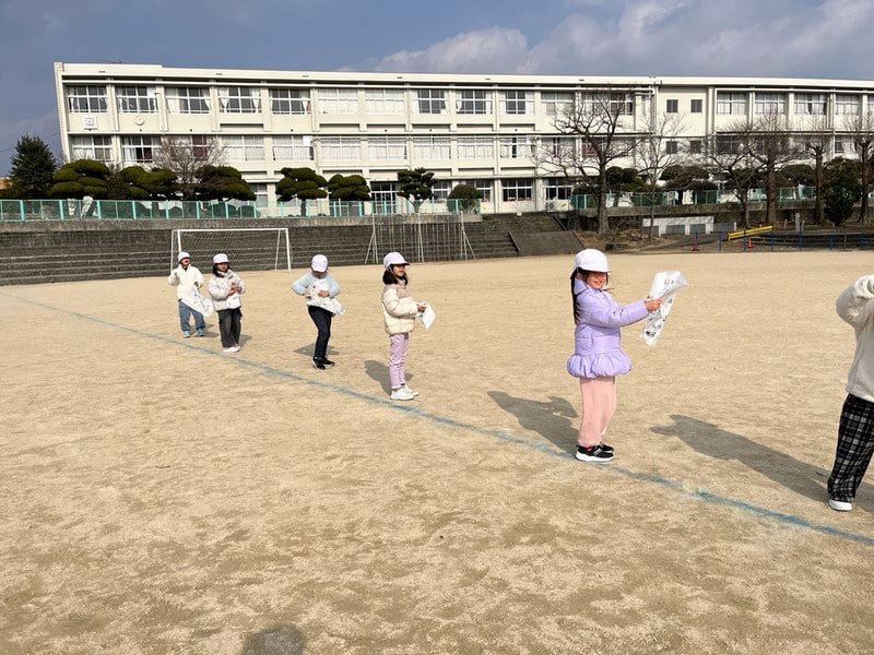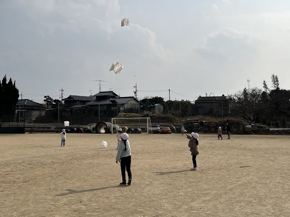〇先週から今週にかけて、1年生の全クラスが凧あげを行いました。
