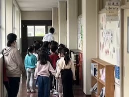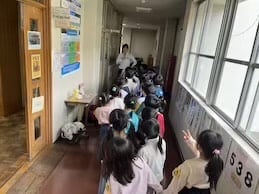 〇今日は、1年生が校舎内をみんなで探検していました。