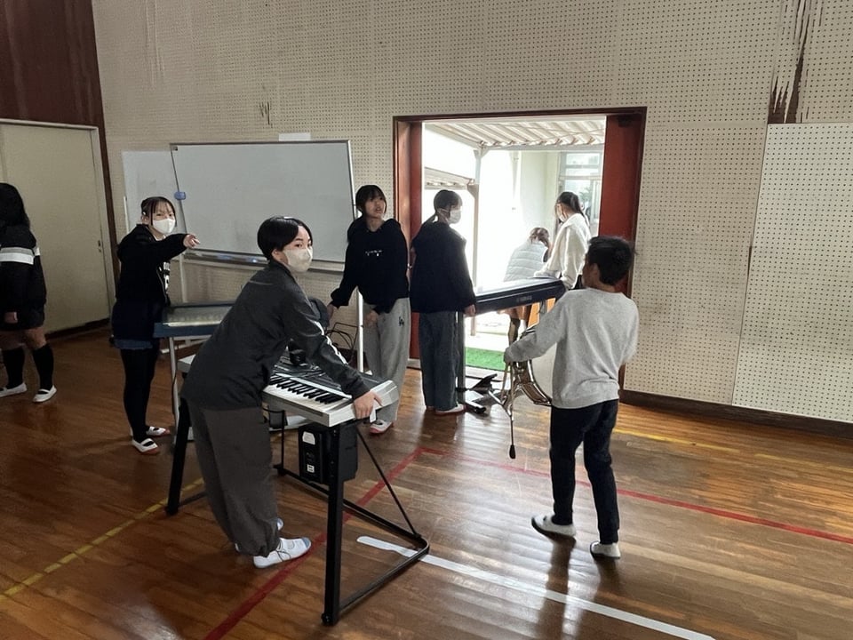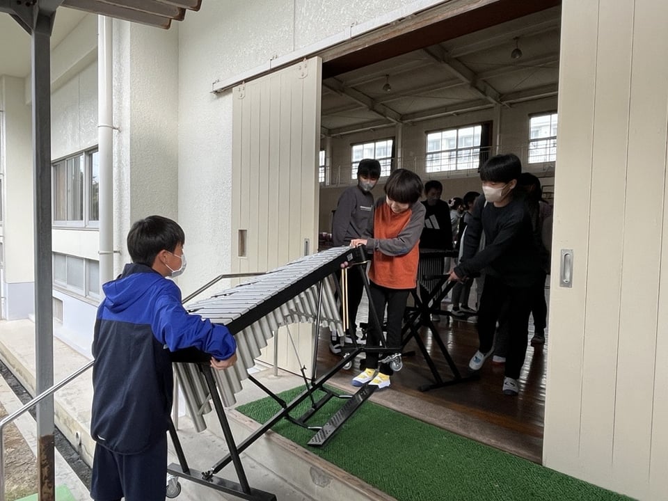 〇それを受けて、6年生は体育館に準備していた楽器を、中間休みに撤収