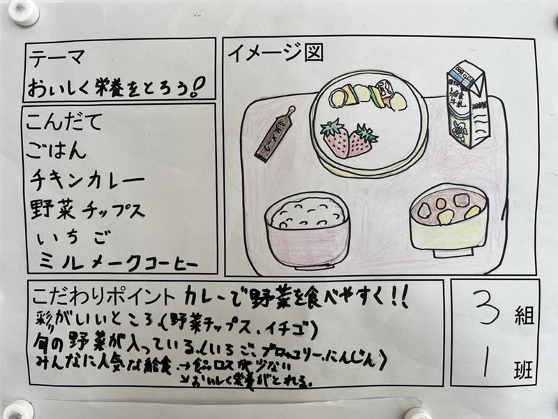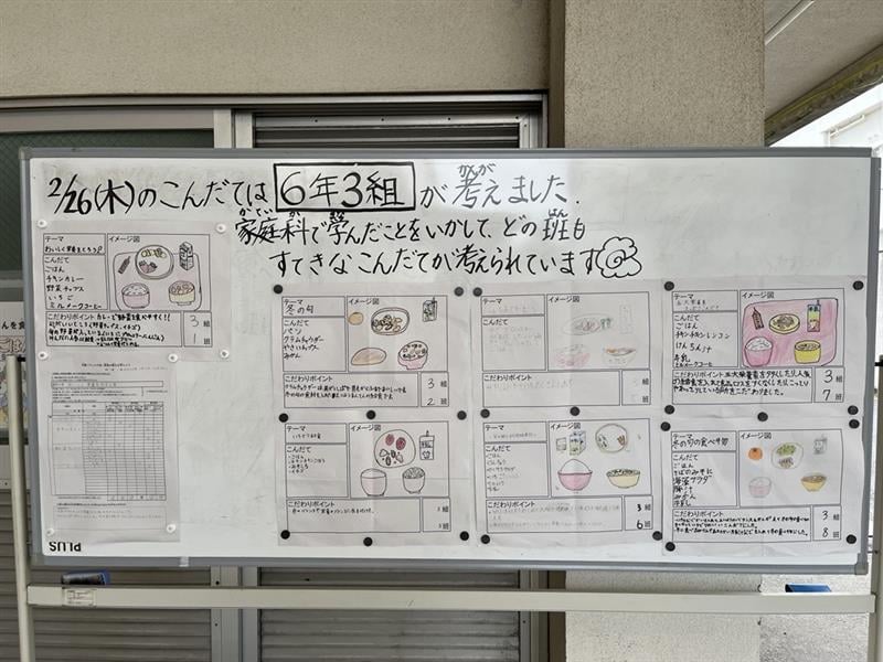 〇6年生が、栄養バランス・見た目・季節感にこだわって考えた特別メニューが、今日の給食として提供されました。