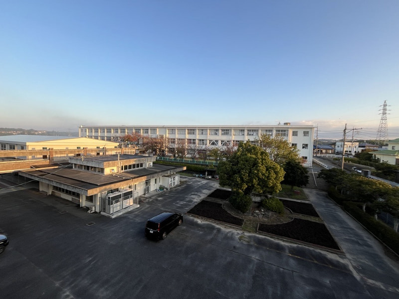 〇冷え込んだ朝……快晴の空のもとの校舎がいい感じです(写真は管理棟から児童棟を見たものです)。