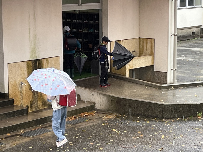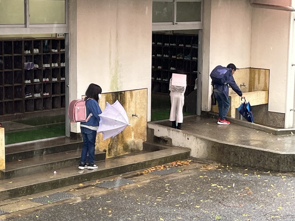 周囲への思いやり? 雨が降る日の昇降口前の光景から