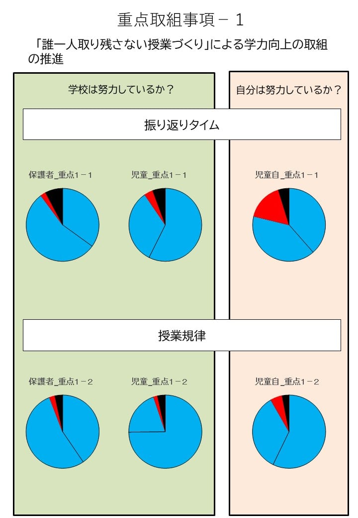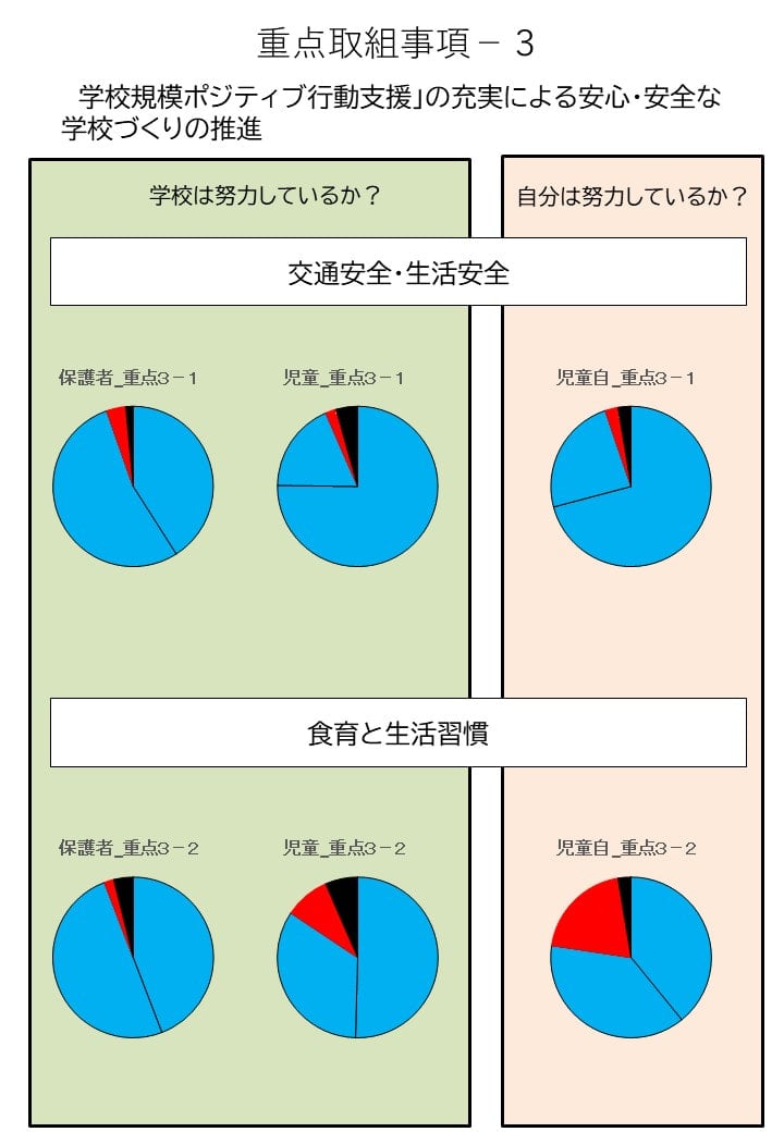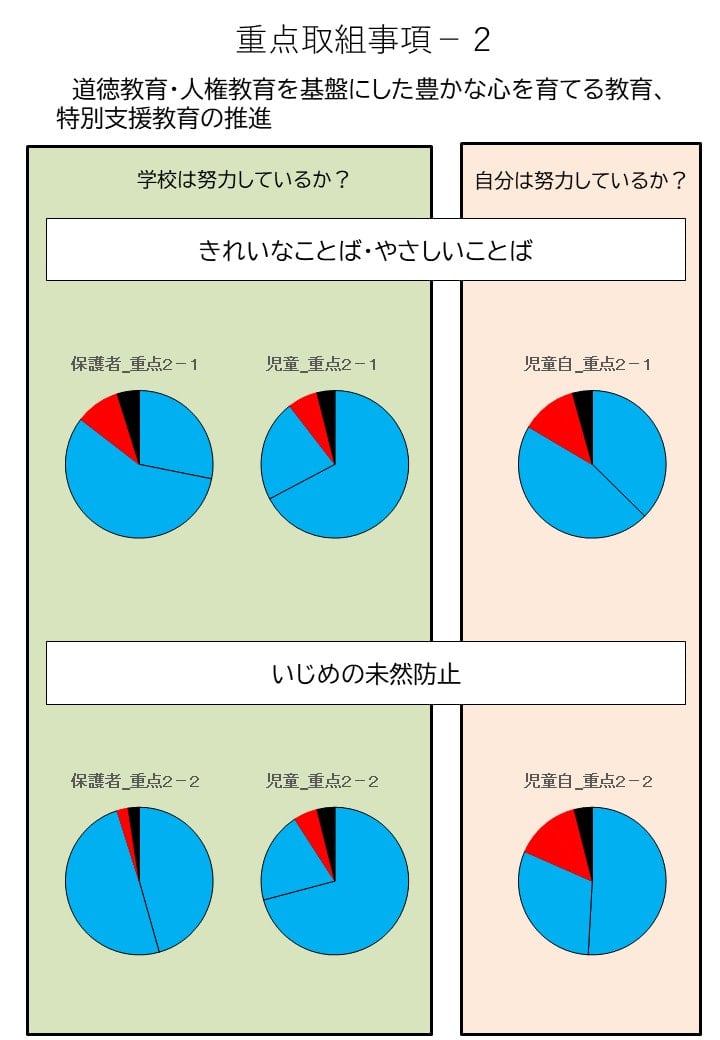〇児童の自己評価が学校への評価と比べると低い傾向にある。