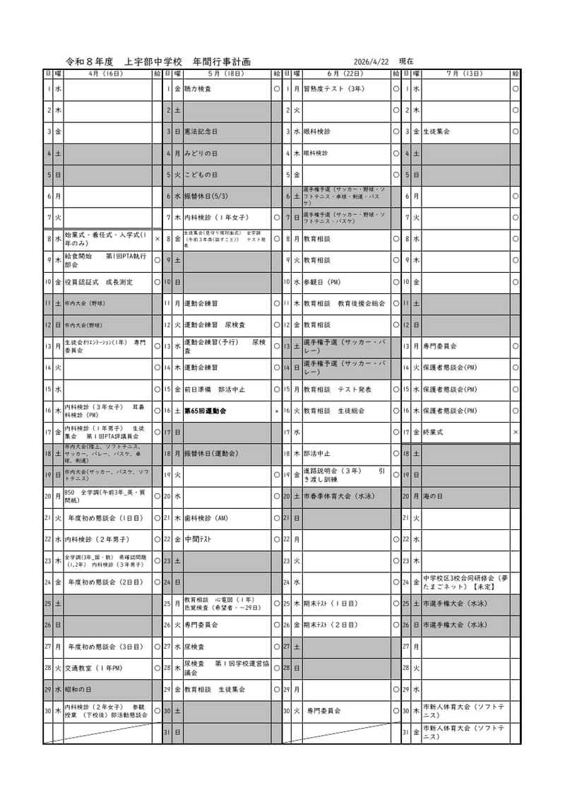 > 令和8年度 年間行事予定