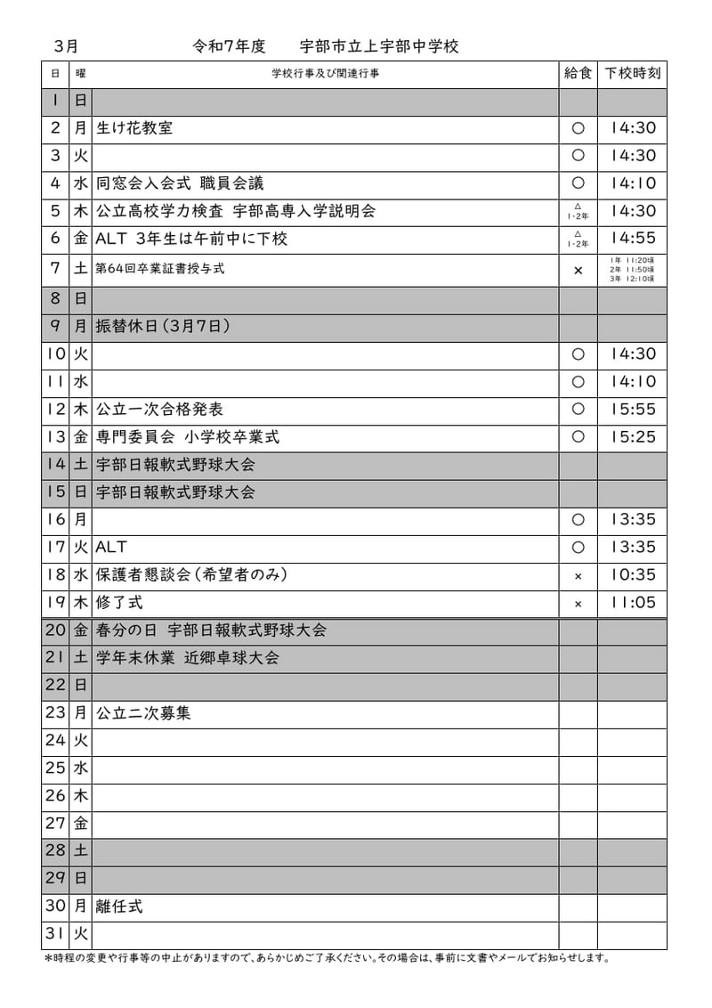 > 令和8年3月の行事予定