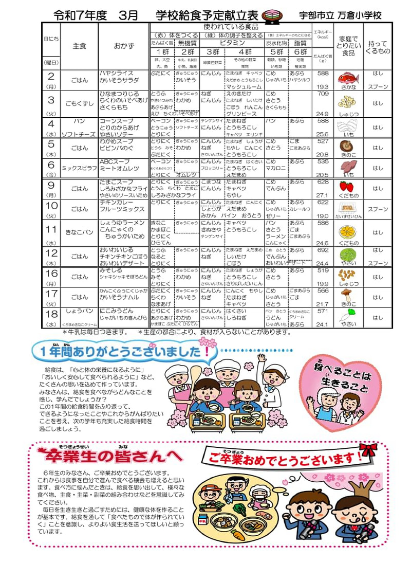 R8.3月 万倉小予定献立表