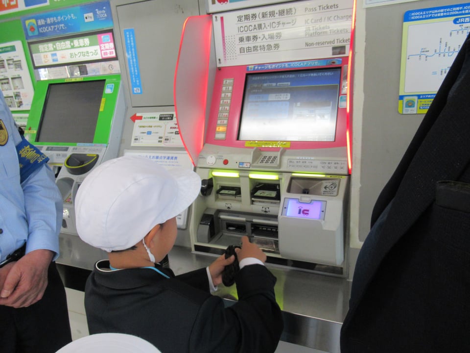 元気に学校をバスで出発し、JR厚狭駅で切符を購入。