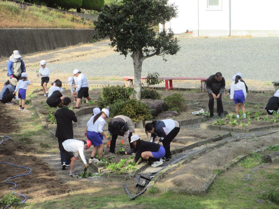 校地内の花壇に花の苗を植えました。今年度も地域から多くの方々がボランティアとして参加してくださいました。それまで寂しかった花壇が、あっという間に花の苗でいっぱいになりました。これから、地域・保護者の皆様や来校される方々を、美しい花たちが出迎えてくれることと思います。