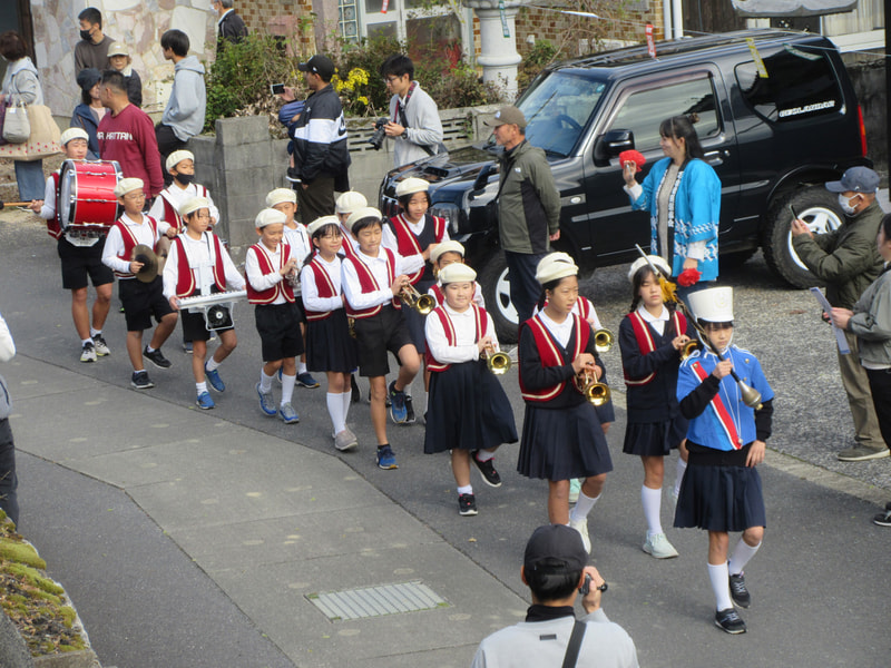 11月23日(土:祝)に、本校のマーチングバンドが 万倉地域の伝統行事、万倉天満宮大祭のオープニングパレードに参加しました。めっきり秋らしくなった この日、学校下の駐車場横から宮尾神社までの道のりを、演奏しながら立派に行進しました。沿道からたくさんの拍手や激励の言葉をいただきながら、大役をしっかり果たすことができました。