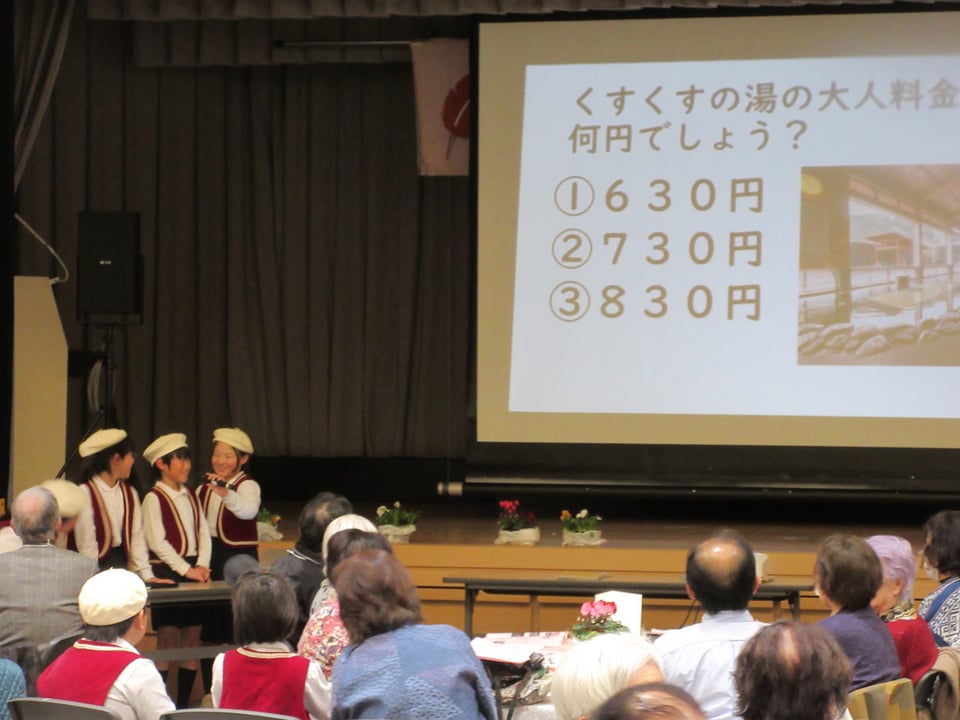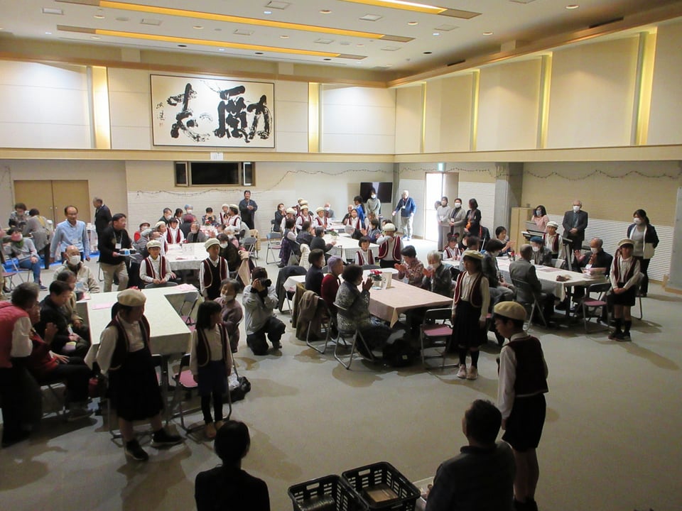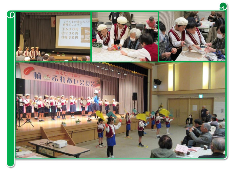 本校児童が楠地区社会福祉協議会から参加協力の依頼をうけ、「楠ふれあい会食会」に出席しました。万倉ふれあいセンターに集まってくださった地域の方々と楽しいひとときを過ごしました。