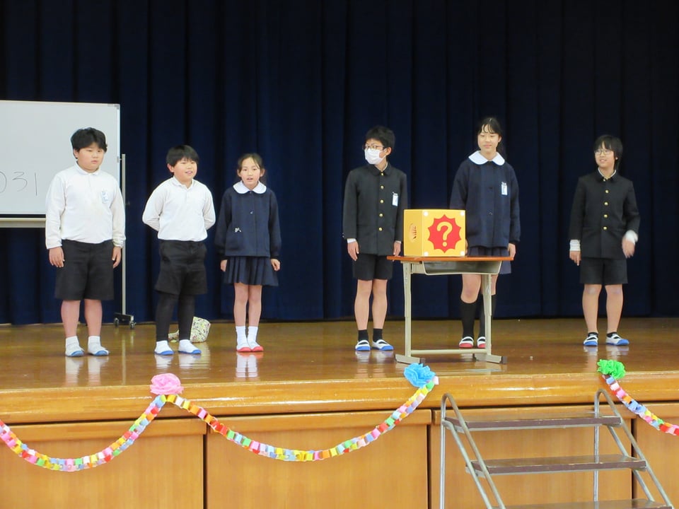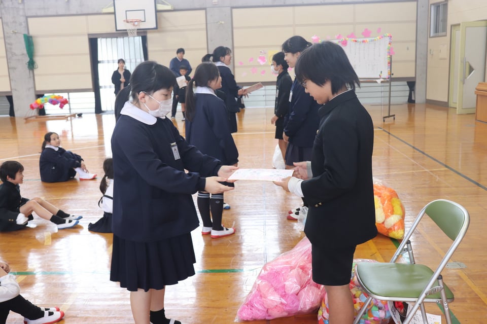 3月3日(火)3~4校時に6年生を送る会を行いました。4・5年生が司会進行をつとめ、各学年からの出し物やプレゼント渡しなど、どの発表も心温まるものでした。