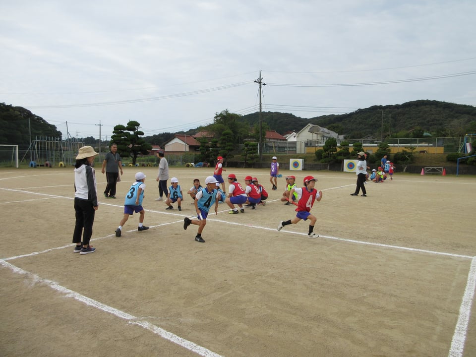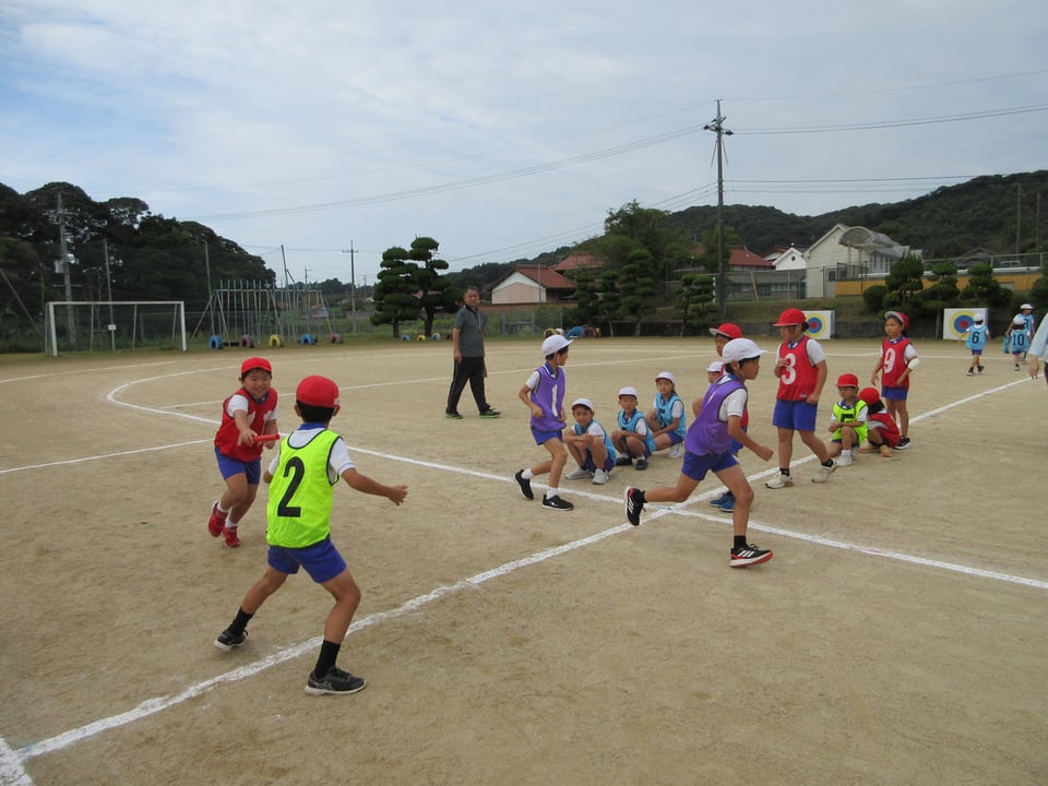10月11日(土)の運動会に向けて、この日は、全校リレーの走順とバトンの受け渡し、そして徒競走の練習をしました。