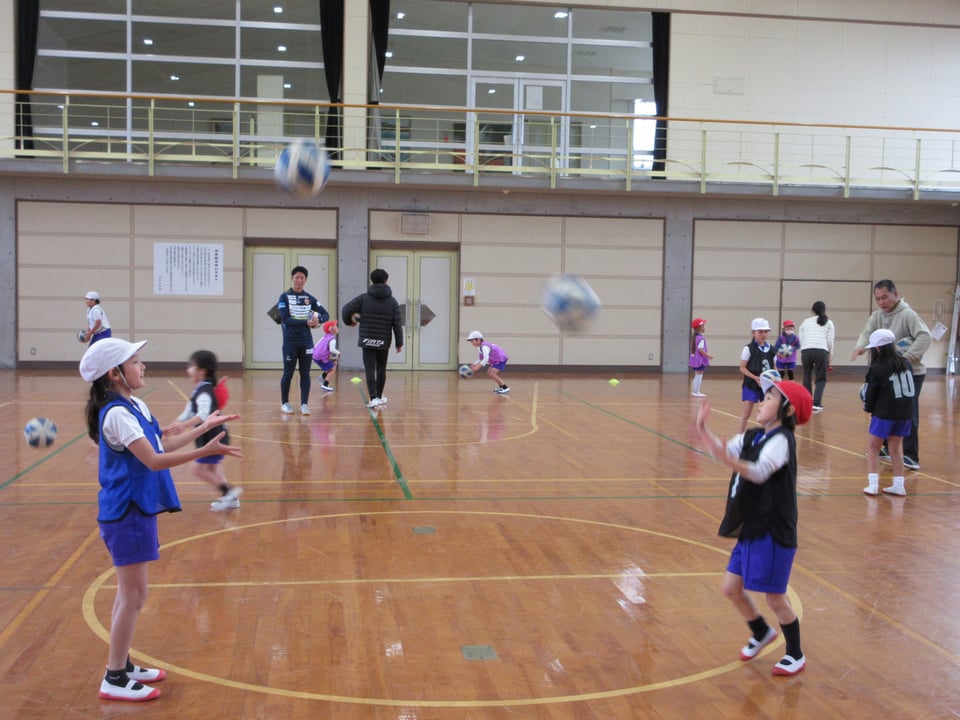まずは、ボールを使わずに体を動かすことから始め、次第にボールを使ってさまざまな運動に取り組みました。そして最後はミニゲームをして楽しみました。