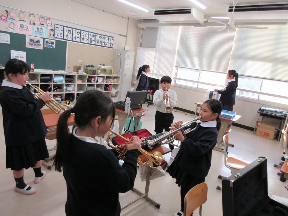 卒業式当日の「見送り演奏」に向けて、どの児童も一生懸命がんばっています。