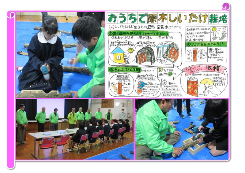 2月19日(木)に、本校の5・6年生が「森の学校(シイタケの駒打ち体験)」に取り組みました。