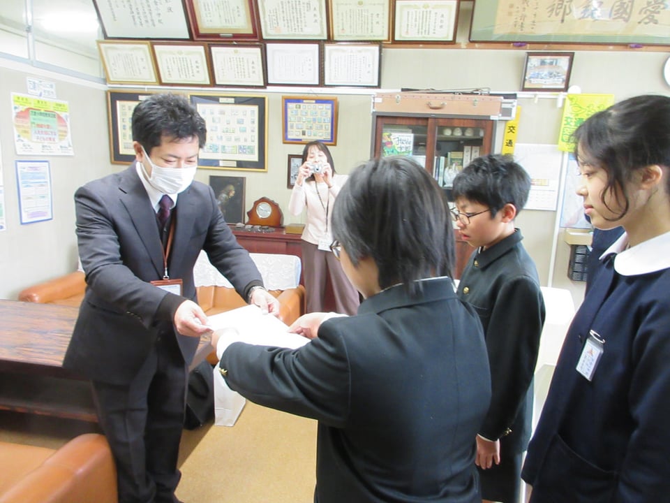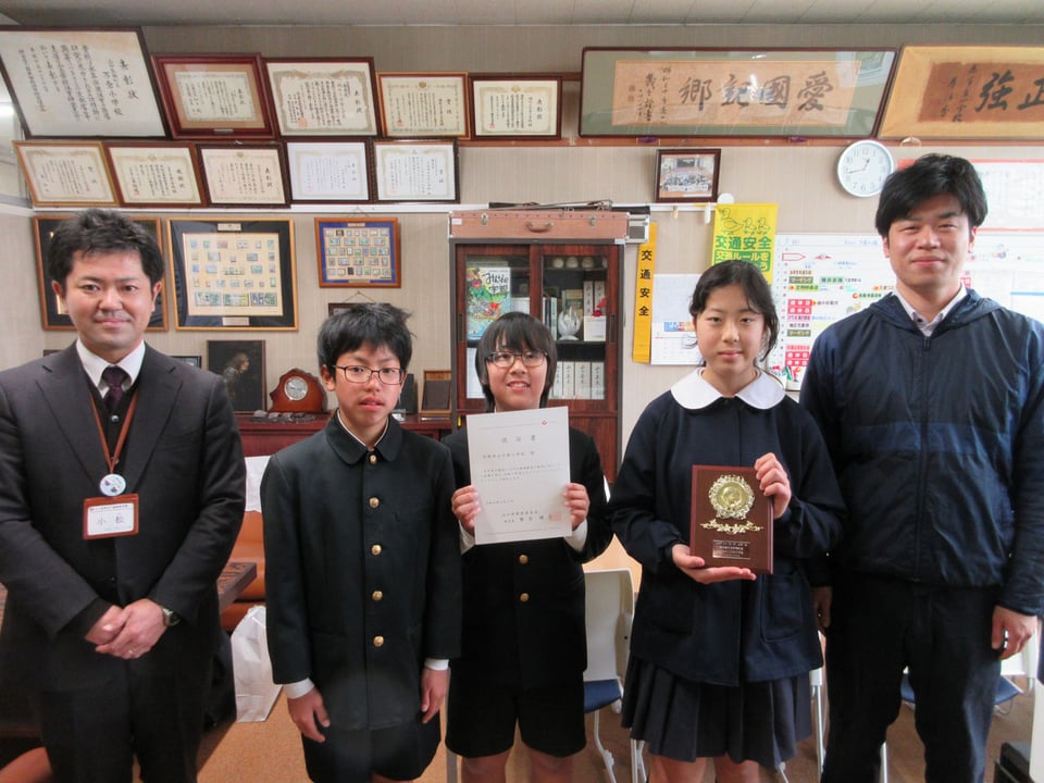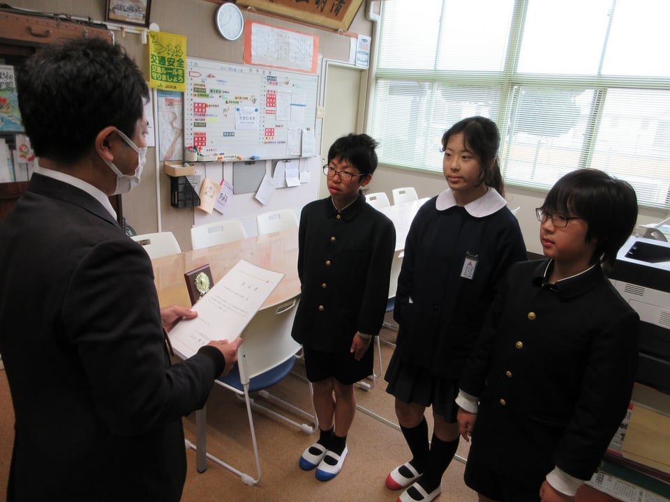 6年生が代表で認証書と盾を受け取り、お礼の言葉を述べました。この表彰は、先輩たちや地域の皆様のご協力で続けてこられたことで、これからも この活動を継続させたいという思いを強くしていました。