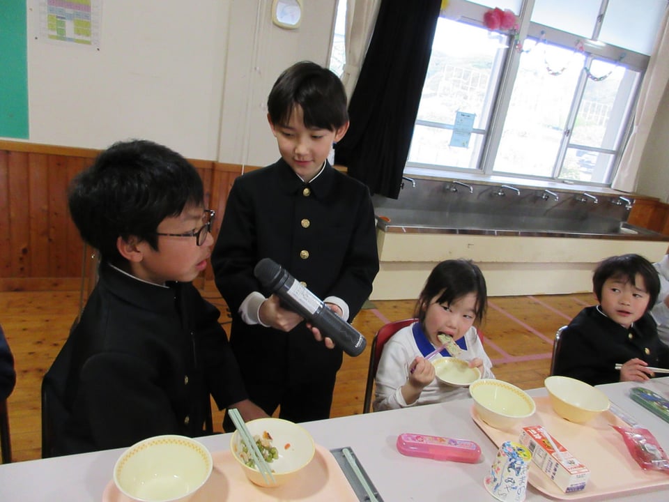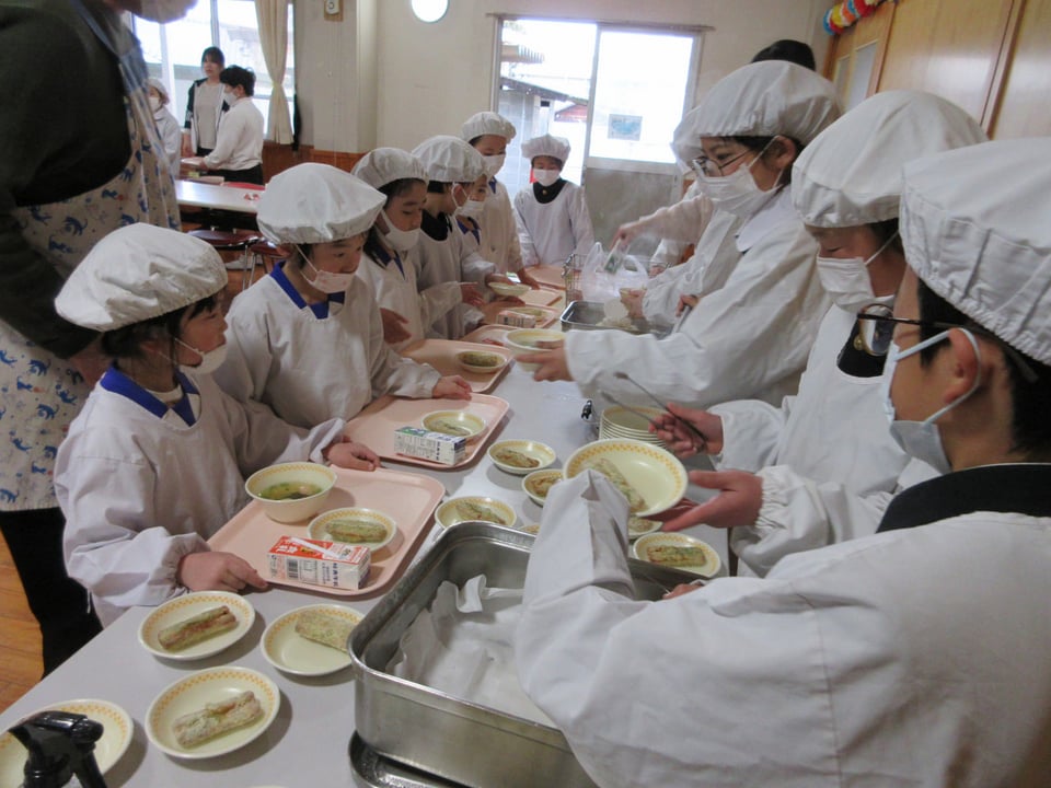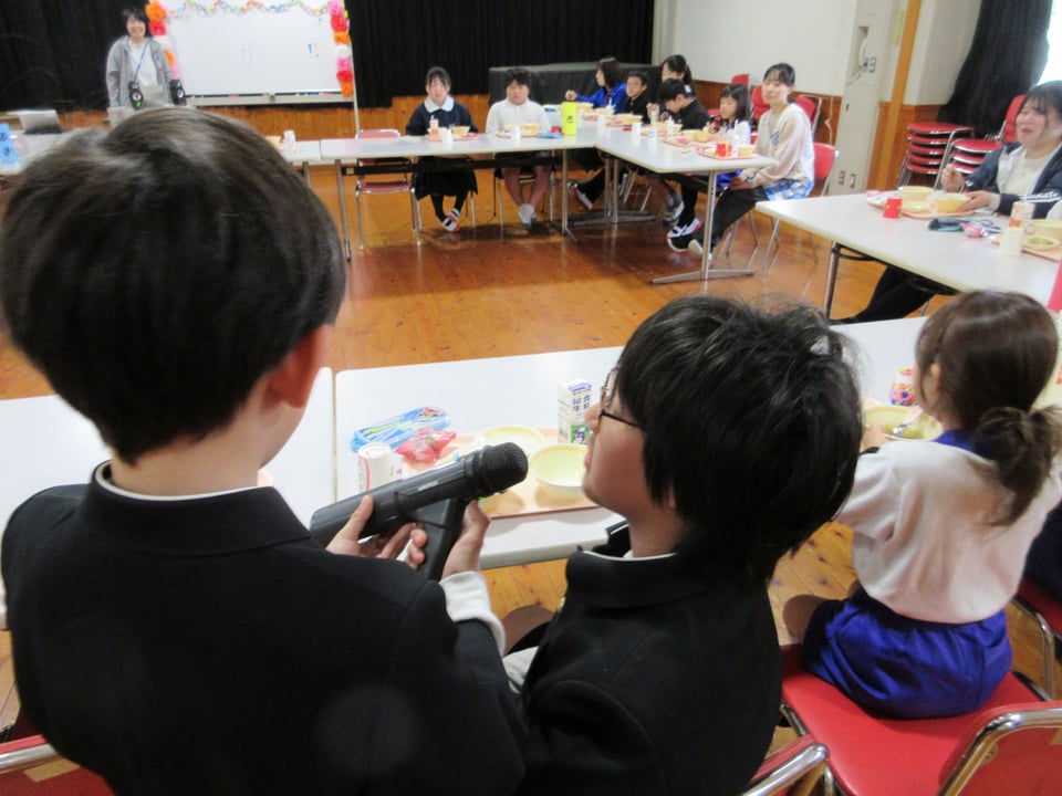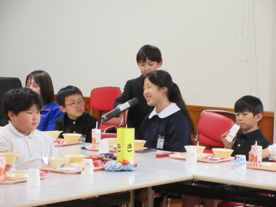 3月3日(火)に3学期の全校給食を行いました。卒業を来週に控える6年生にとって、小学校生活最後の全校給食でした。