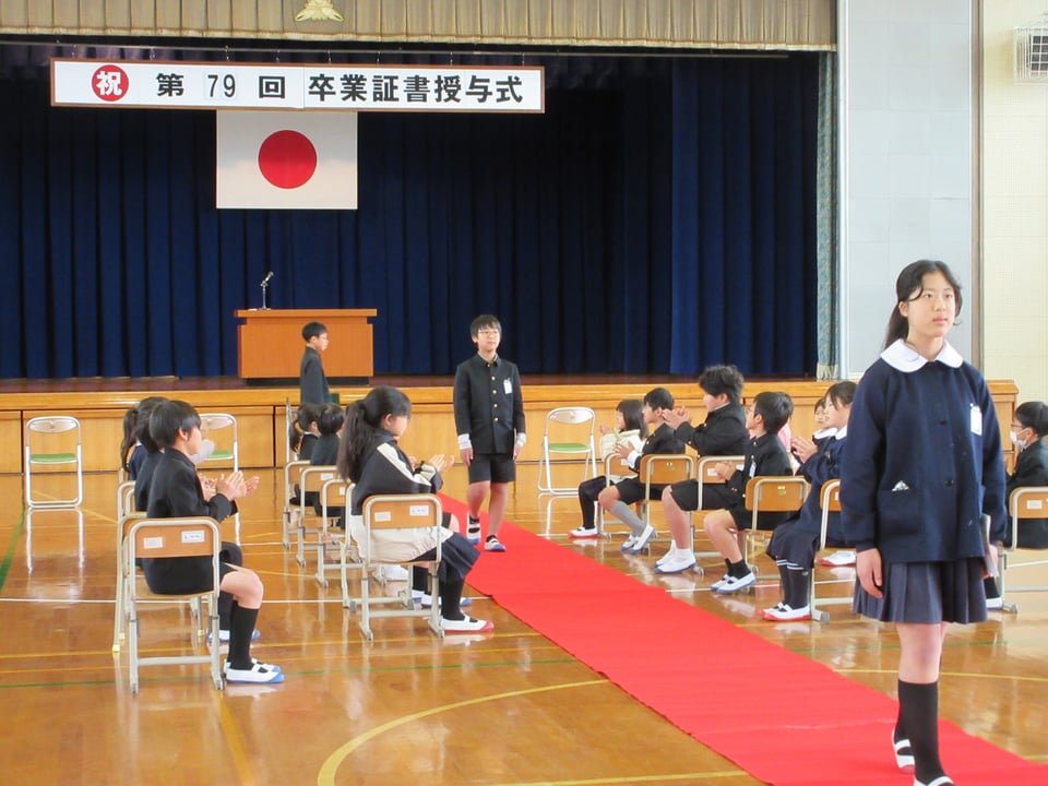 いよいよ今週金曜日が卒業証書授与式です。本日、全校で式の予行練習を行いました。